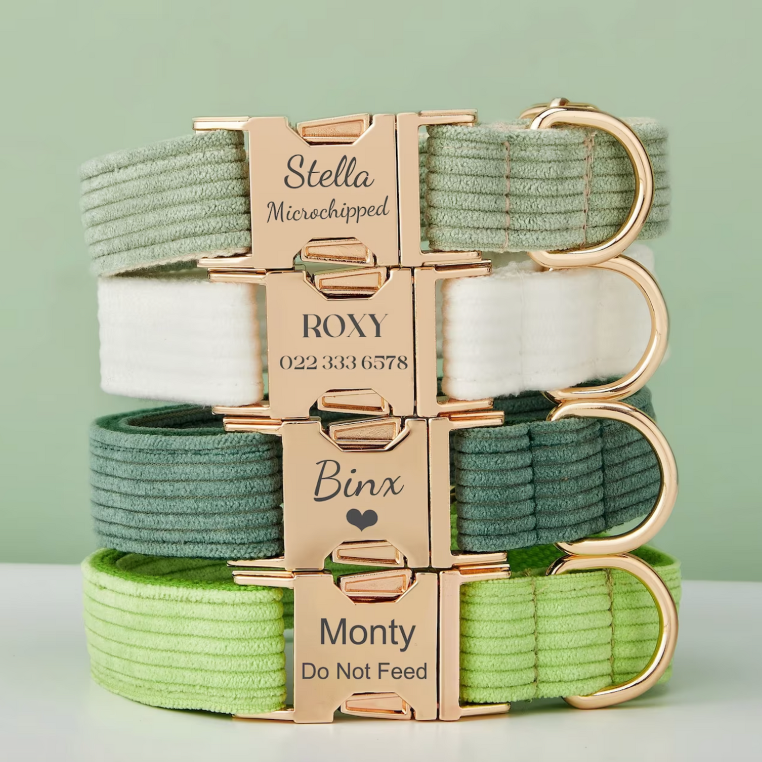 🎁 En plus d'être une pièce élégante, ce collier personnalisé en velours côtelé constitue le cadeau idéal pour célébrer l'anniversaire de votre chien ou pour le doter d'un accessoire unique dès sa naissance.